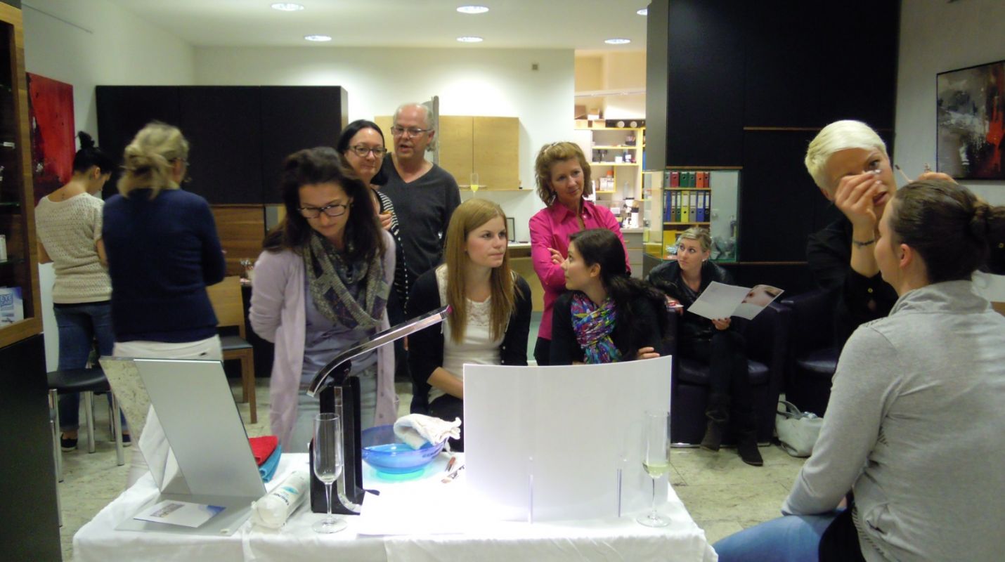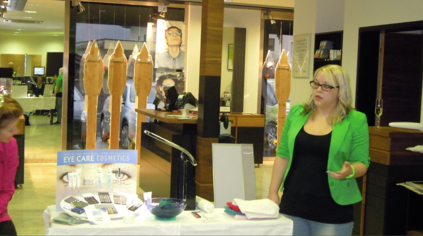 Unsere Mitarbeiterin Tina Moosmair hat das Produkt vorgestellt. Sie hat den Besuchern die vielen Vorteile dieser speziellen Kosmetik näher gebracht. Denn die Produkte der Firma Eye Care sind ohne Konservierungsstoffe und vor allem für Kontaktlinsenträger und sensible Augen besonders gut geeignet.