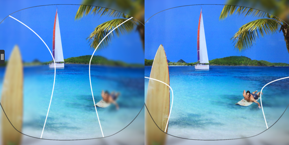 … decken einen Bereich von Ferne (über 5m) bis Nähe ca. 40 cm ab. Im oberen 1/3 der Gläser ist der Fernbereich, im zweiten 1/3 befindet sich der Zwischenbereich ( Computer, Staubsaugen, etwa eine Handlänge weit weg) und im letzten 1/3 können auf 40 cm die kleine Texte gelesen werden. Seitlich kann es zu leichten Verzerrungen kommen. Die Industrie ist bemüht neue Fertigungsverfahren zu entwickeln um etwaige Unschärfen und Schwimmeffekte auszumerzen. Altbewährte Gläser werden analog gefertigt. Die neueste Generation an Gleitsichtgläsern wird digital hergestellt.